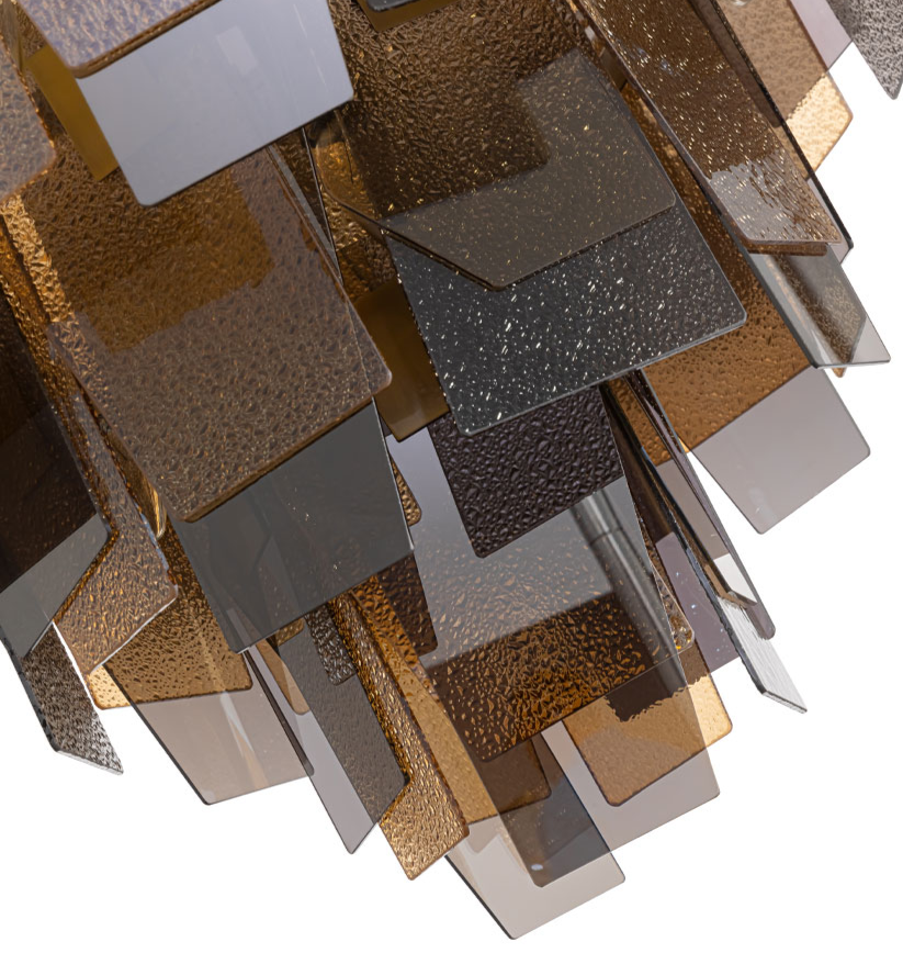 Com presença marcante e visual escultural, o lustre Abstrato combina latão com acabamento ouro velho e globos em vidro fumê, criando um contraste elegante entre matéria e transparência. A peça pendente é sustentada por corrente metálica e acompanhada de canopla e conectores nas extremidades, garantindo instalação segura e acabamento refinado. Ideal para ambientes amplos, comporta até 10 lâmpadas no tamanho P e 19 no tamanho G.